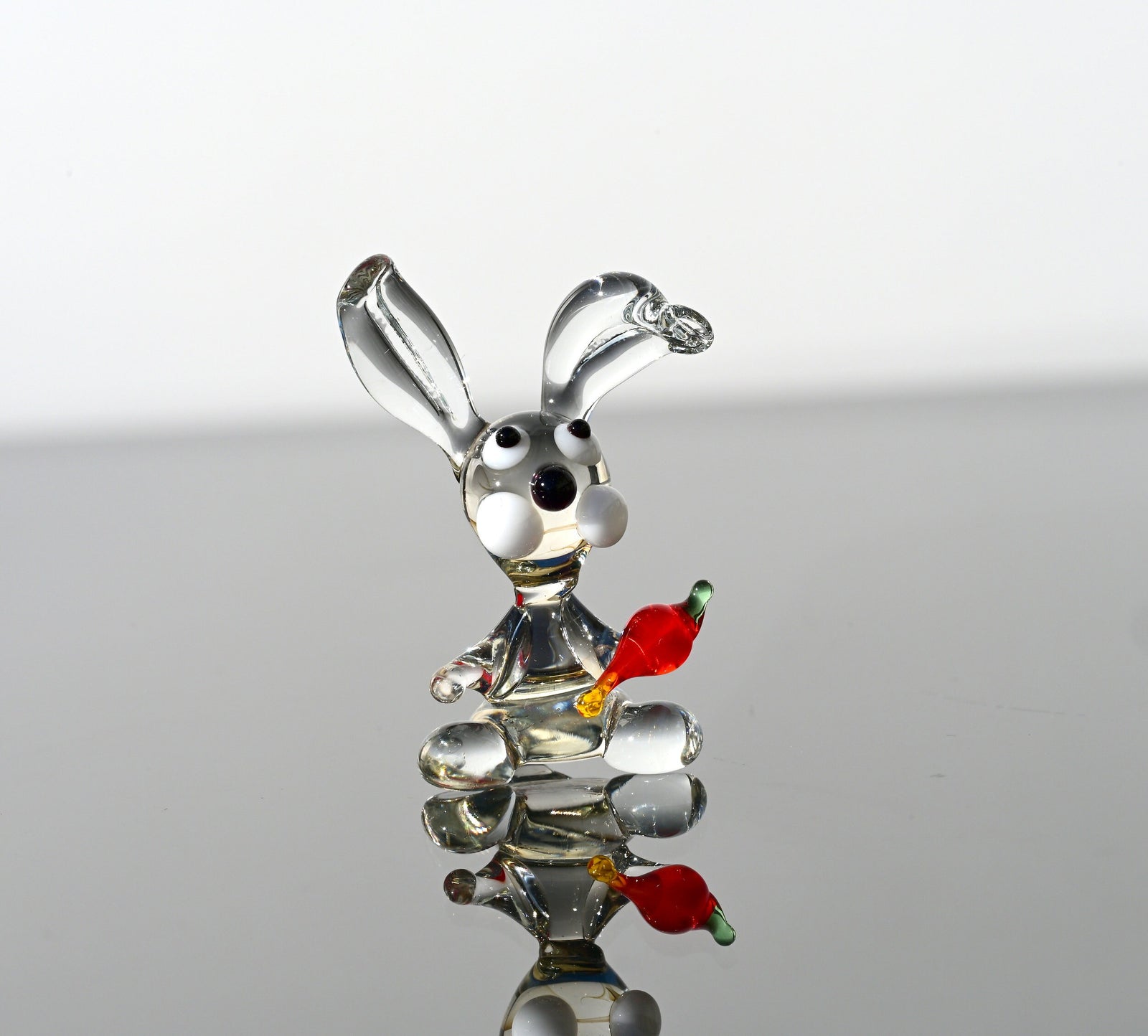 Clear Glass Bunny Figurine: Whimsical Flame-Worked Sculpture