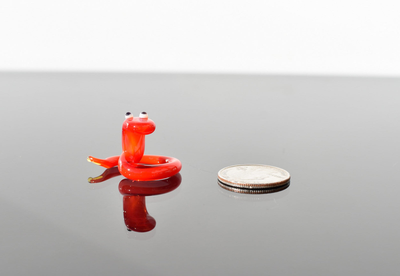 Cute glass tiny red snake, whimsical, Lamp work miniature character from Glass Menagerie, Unique gift