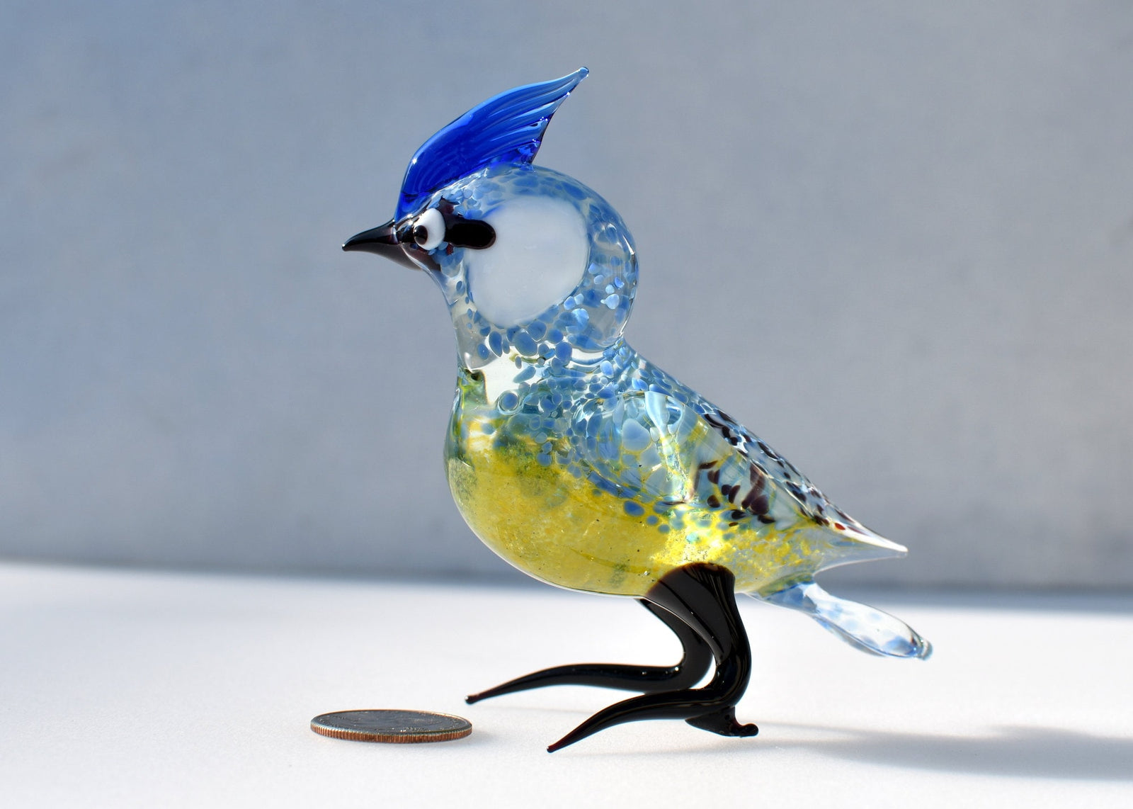 Glass Blue Jay Figurine: Hand-Blown Art Glass Sculpture, 6 Inch