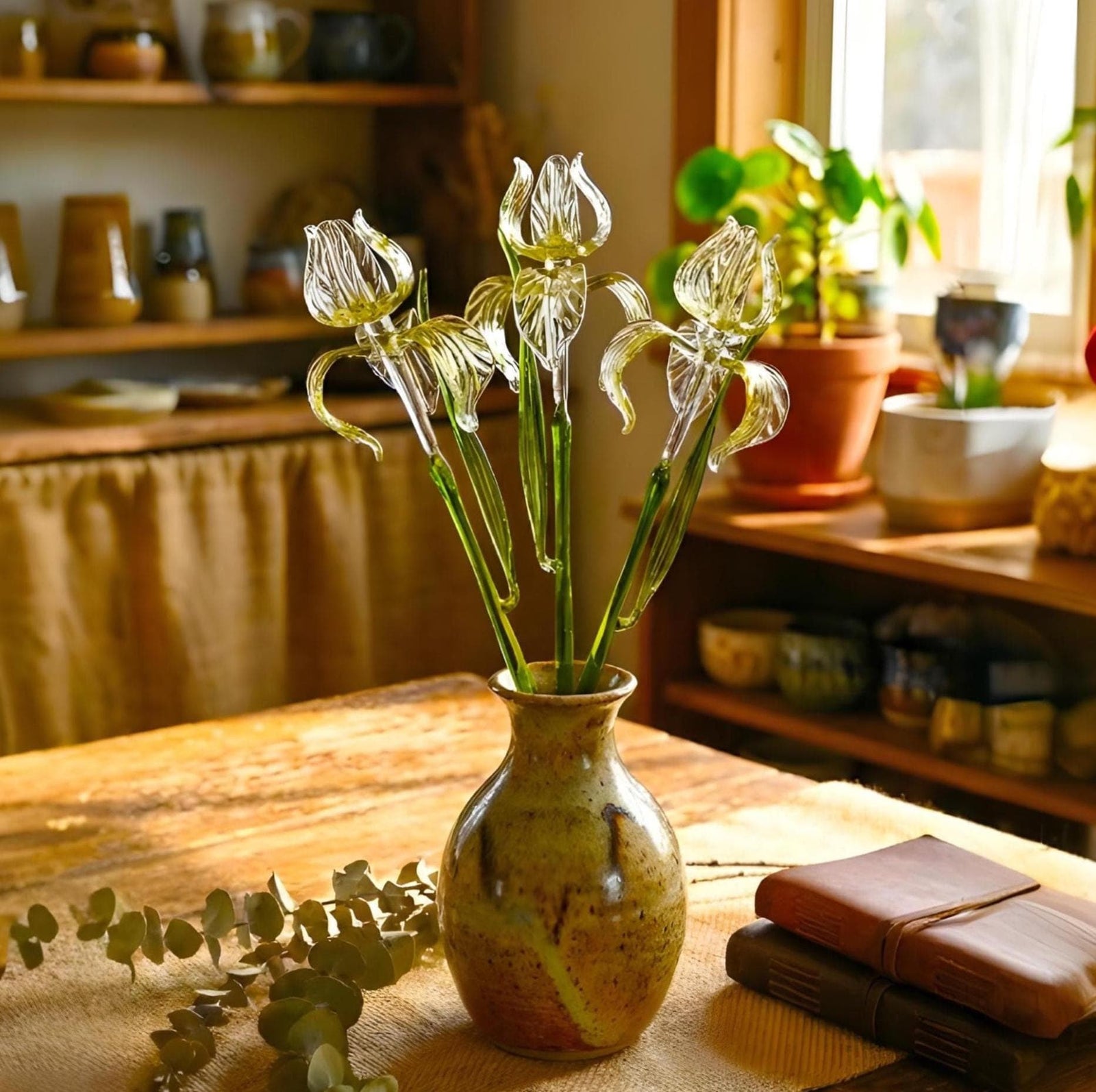 Glass Iris Flower - Hand Blown Glass Iris - Golden Glass Flowers Bouquet - Blown Glass Flowers - Christmas Gift for Mom