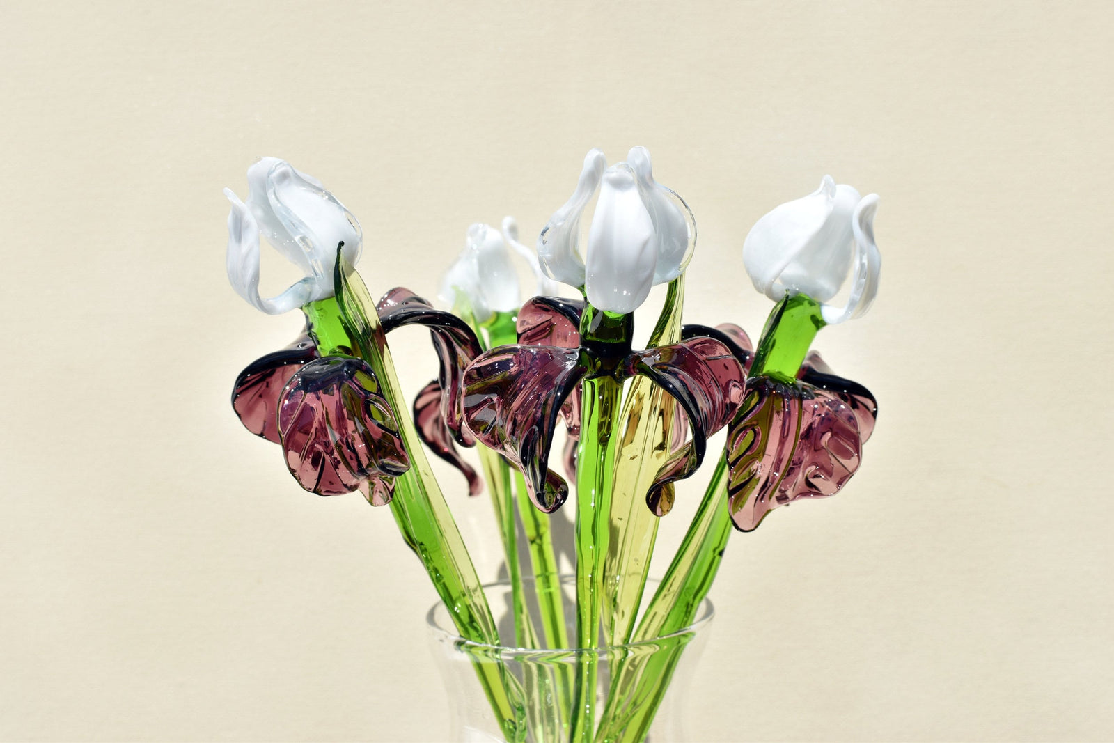 Glass Iris - Glass Flowers Bouquet - Purple Blown Glass Flowers - Handmade Glass Flowers - Christmas Home Decor Gift for Her