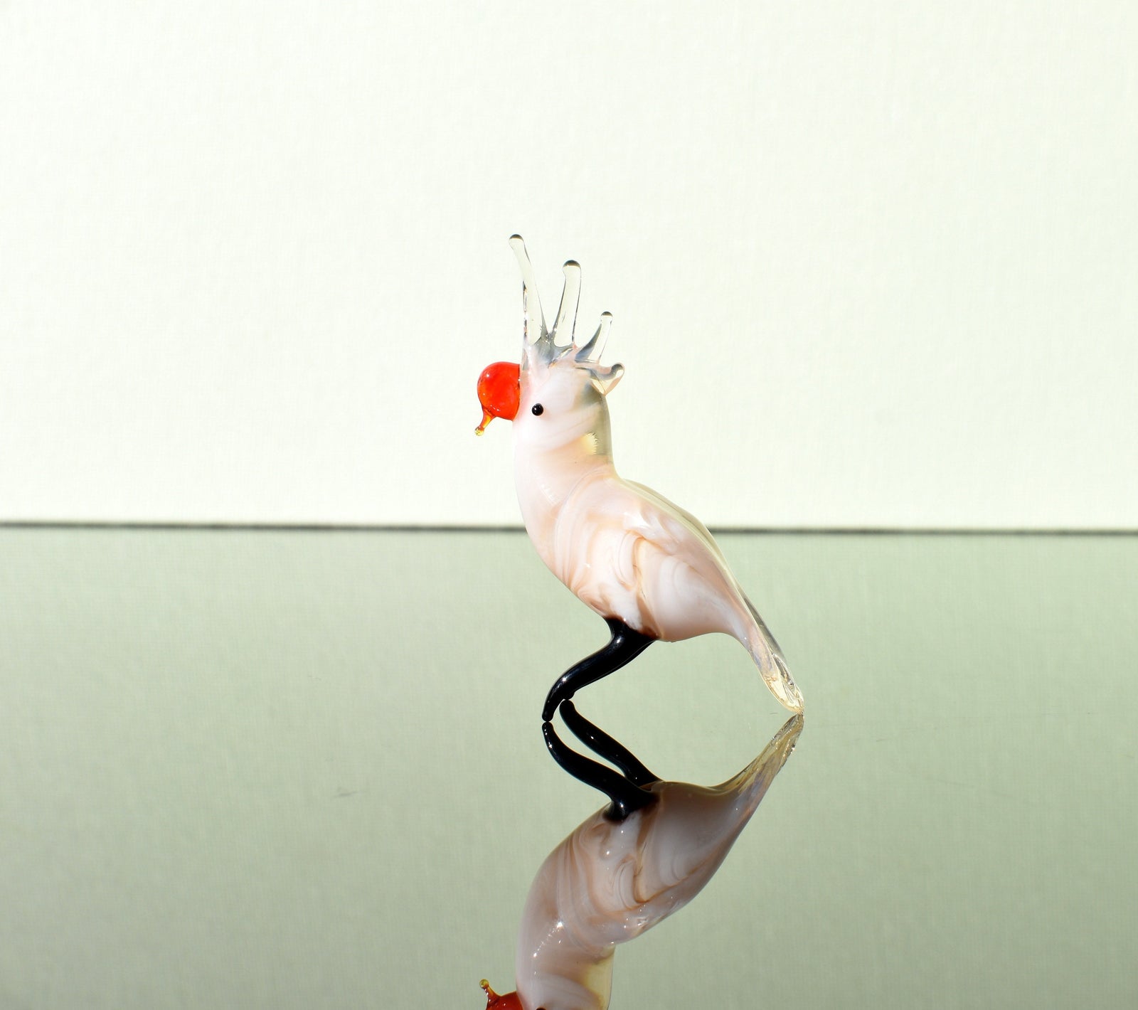 Hand Blown Glass Cockatoo Figurine: Whimsical Parrot Sculpture
