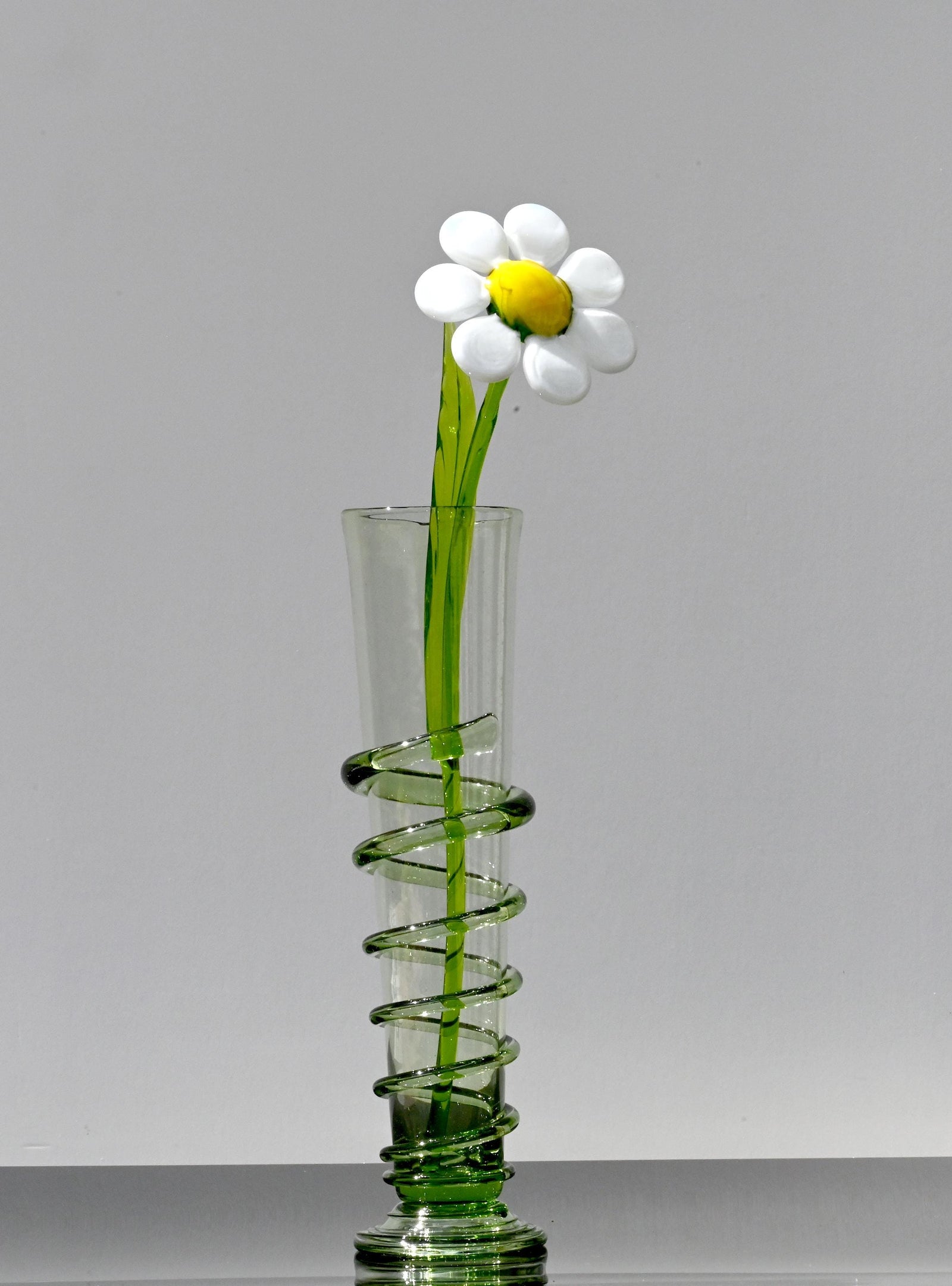 Hand-Blown Glass Daisy Vase: Light Green Art Glass Decor