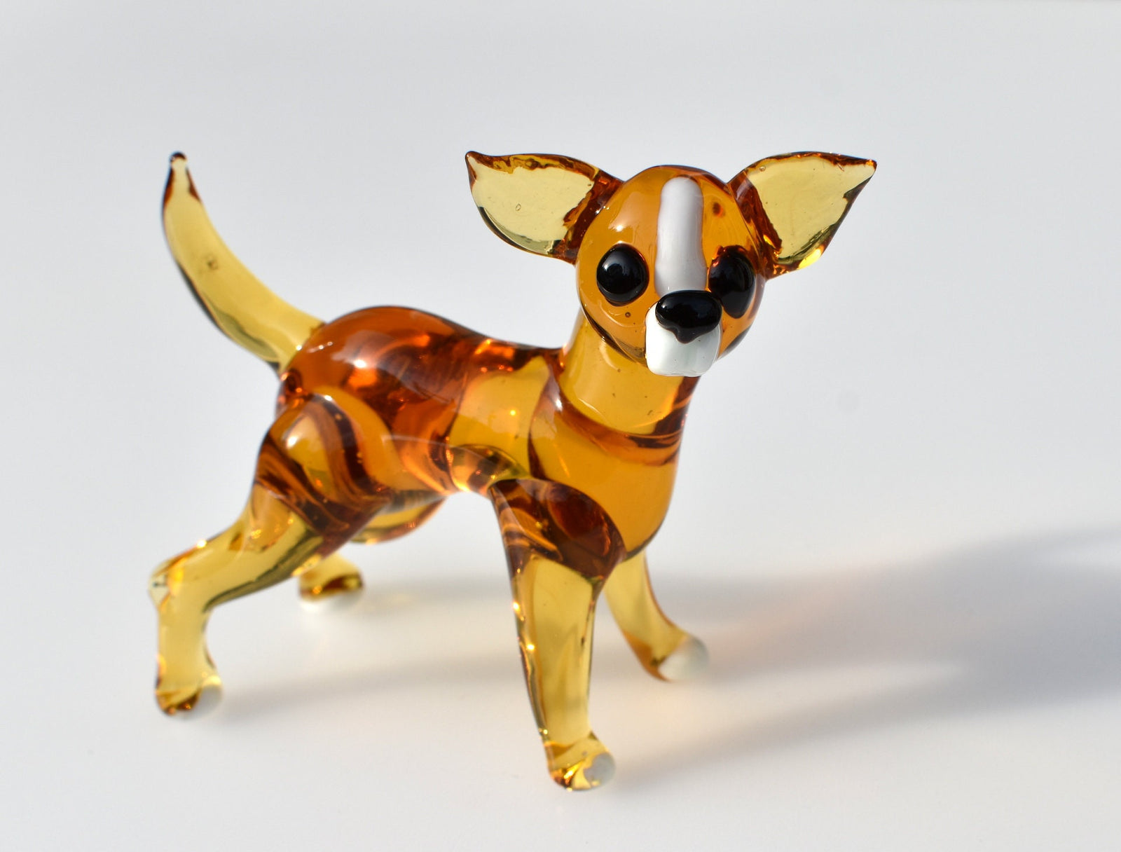 Handmade Blown Glass Chihuahua Figurine: Amber Dog Sculpture