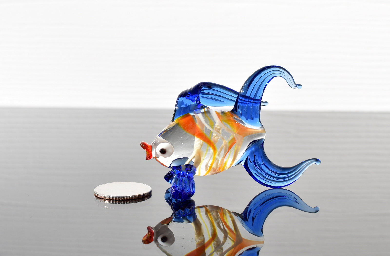 Handmade Flame Worked Glass Goldfish Figurine - Blue Clear Collectible