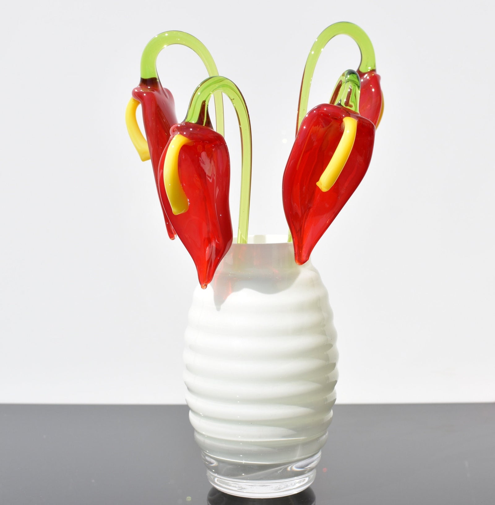 Handmade Glass Anthurium Flower: Red & Yellow Flame-Worked Sculpture
