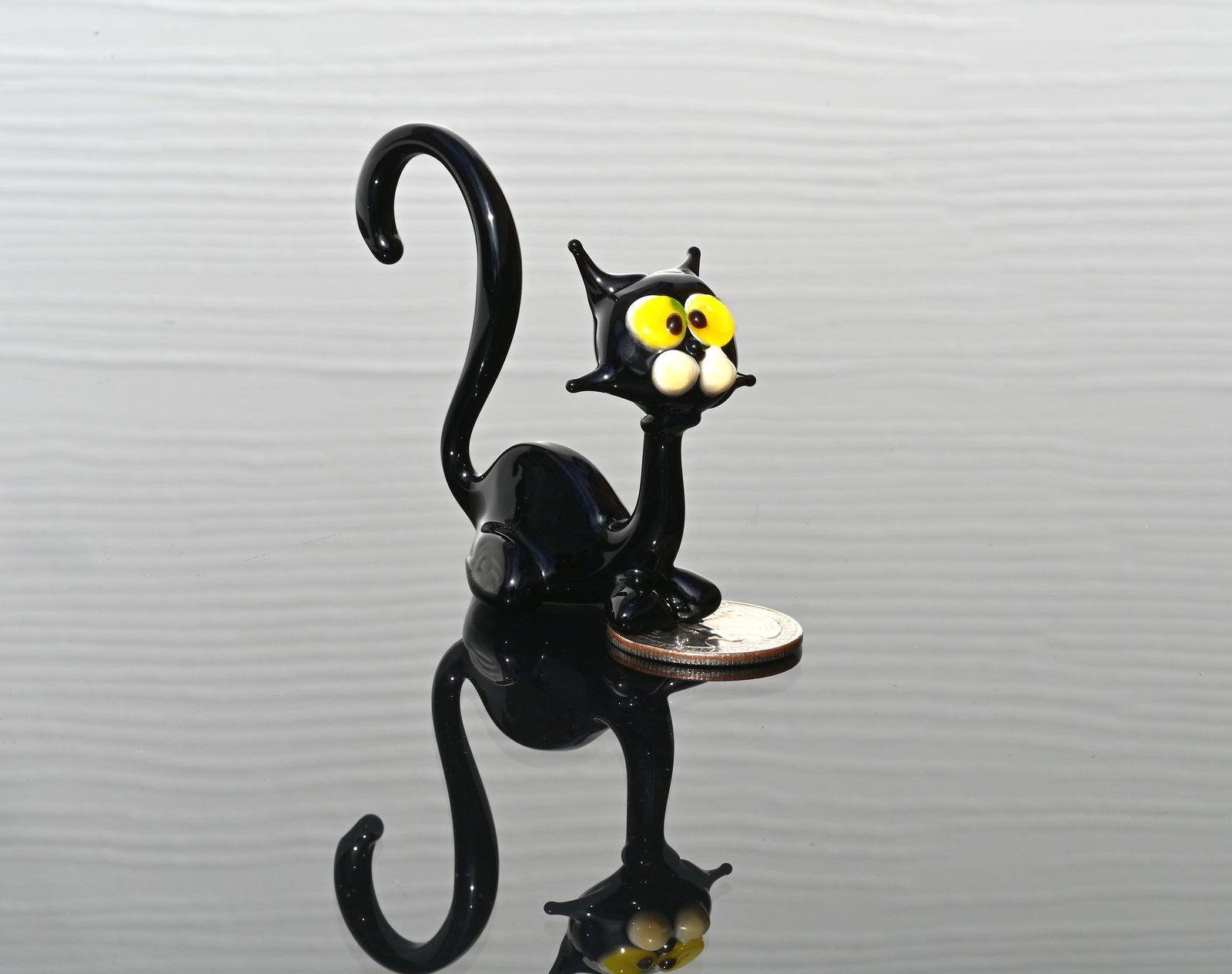 Handmade Glass Halloween Black Cat Figurine: Whimsical Art Sculpture
