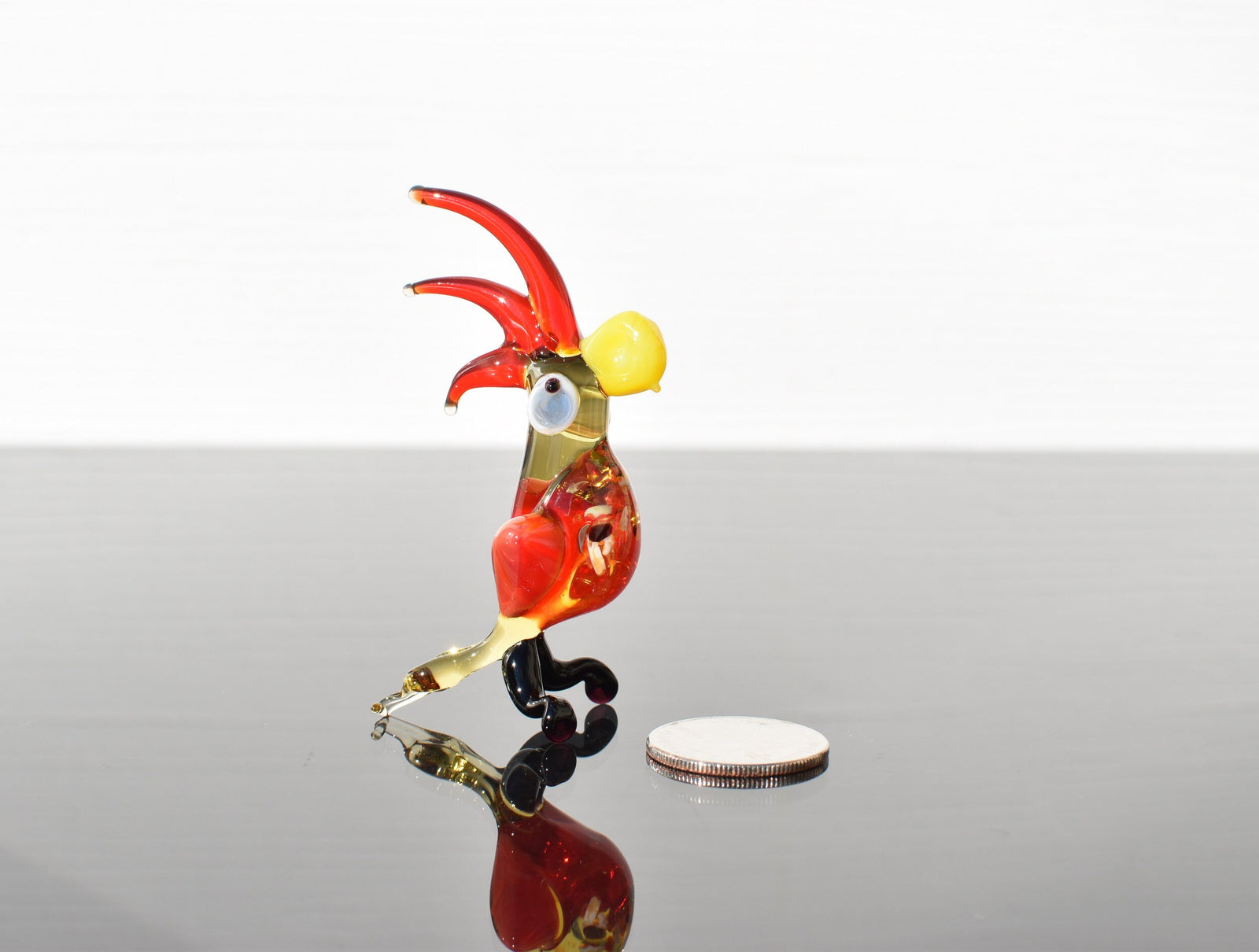 Handmade Glass Parrot Figurine: Whimsical Art Glass Sculpture