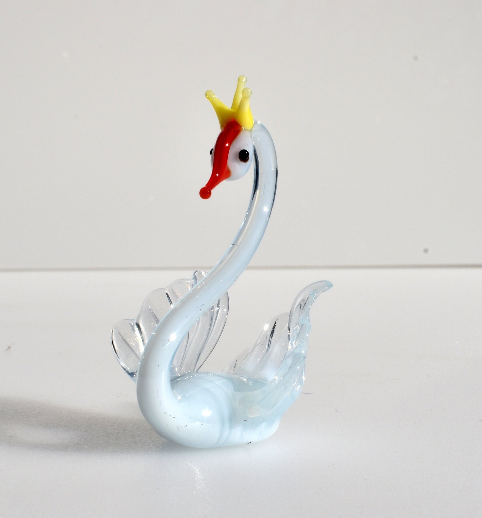 Handmade Glass Swan Figurine: Collectible Art Glass Sculpture