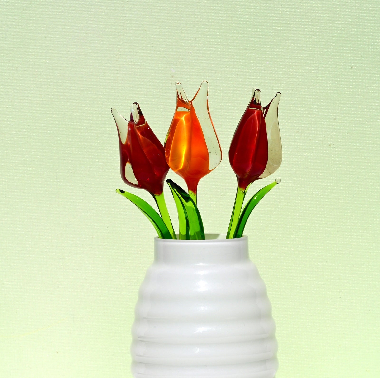 Handmade Glass Tulip Bouquet: Red-Orange Floral Sculpture
