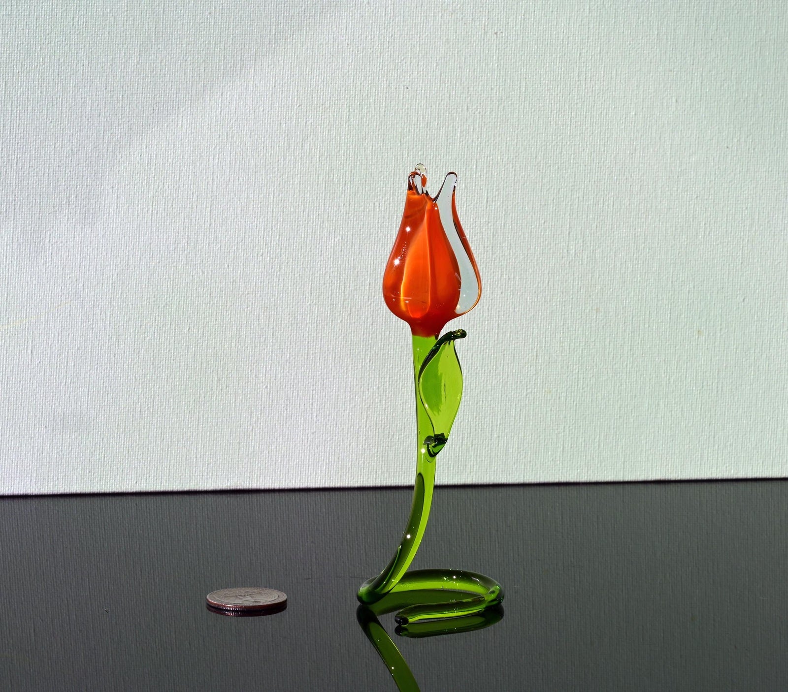 Handmade Orange Glass Tulip Sculpture: Flame Work Art, 6 Inch