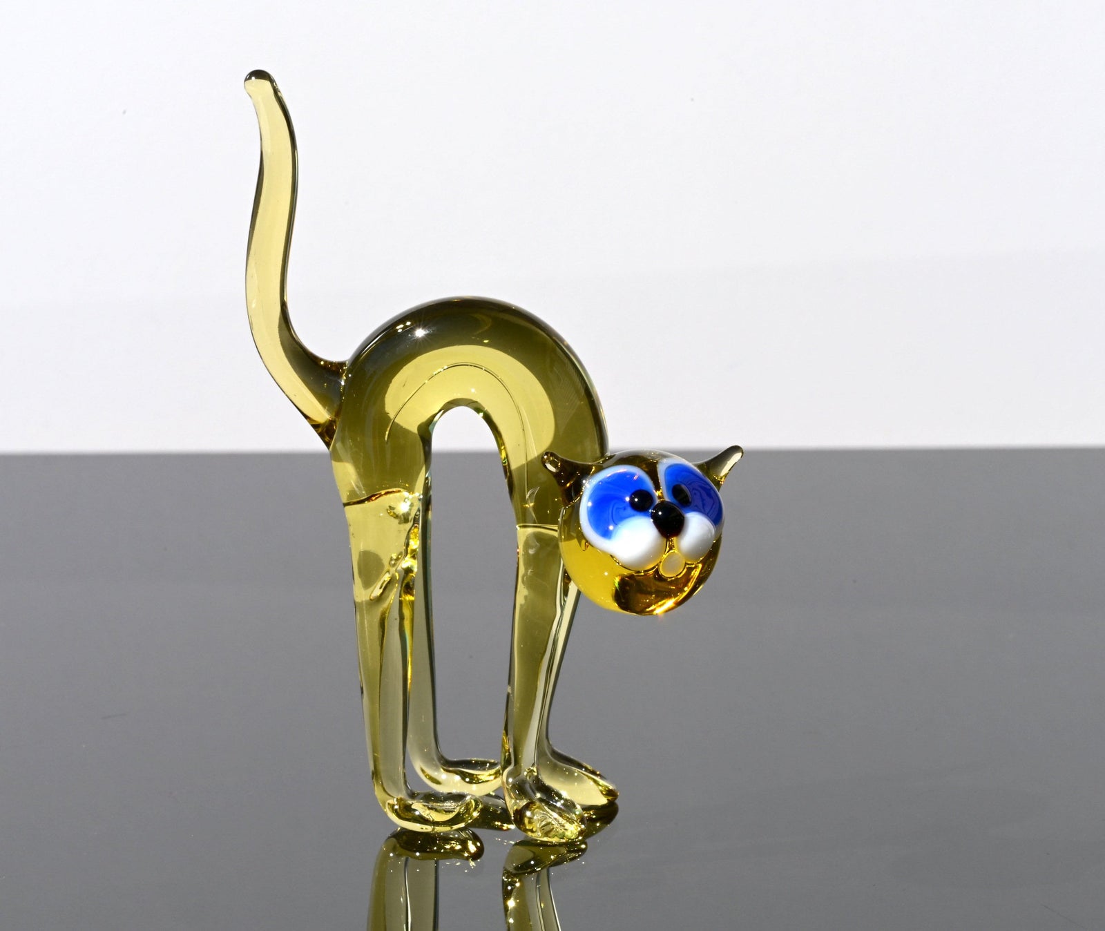 Handmade Yellow Glass Cat Figurine: Whimsical Flame-Worked Art