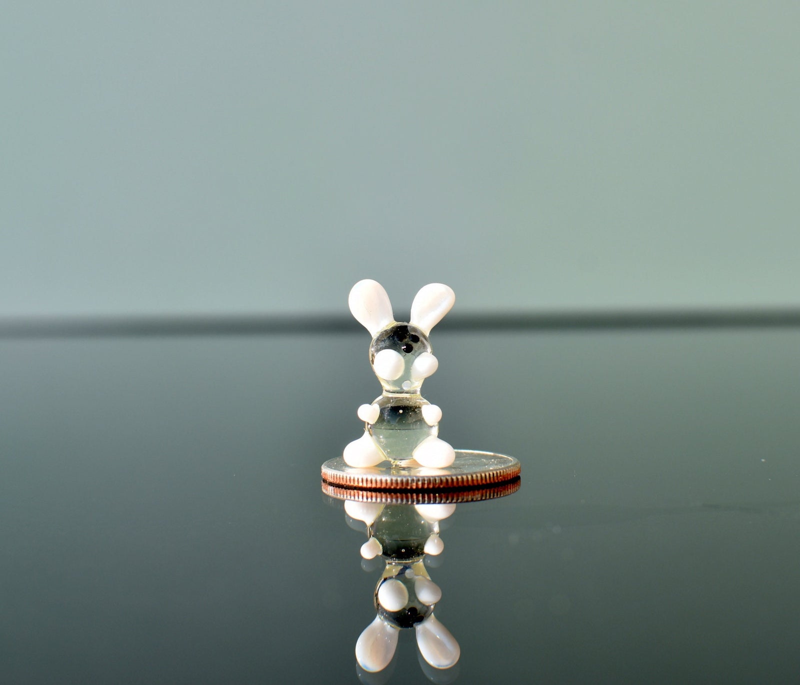 Lampwork Glass Bunny Miniature: Clear-White Whimsical Figurine