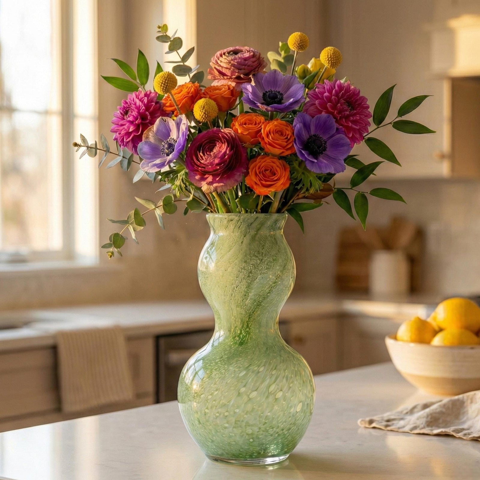 Sage Green Vase - Double Gourd Hand Blown Glass Vase - Art Deco Vase - Murano Glass Vase - Vase for Flowers - Modern Art Glass Home Decor